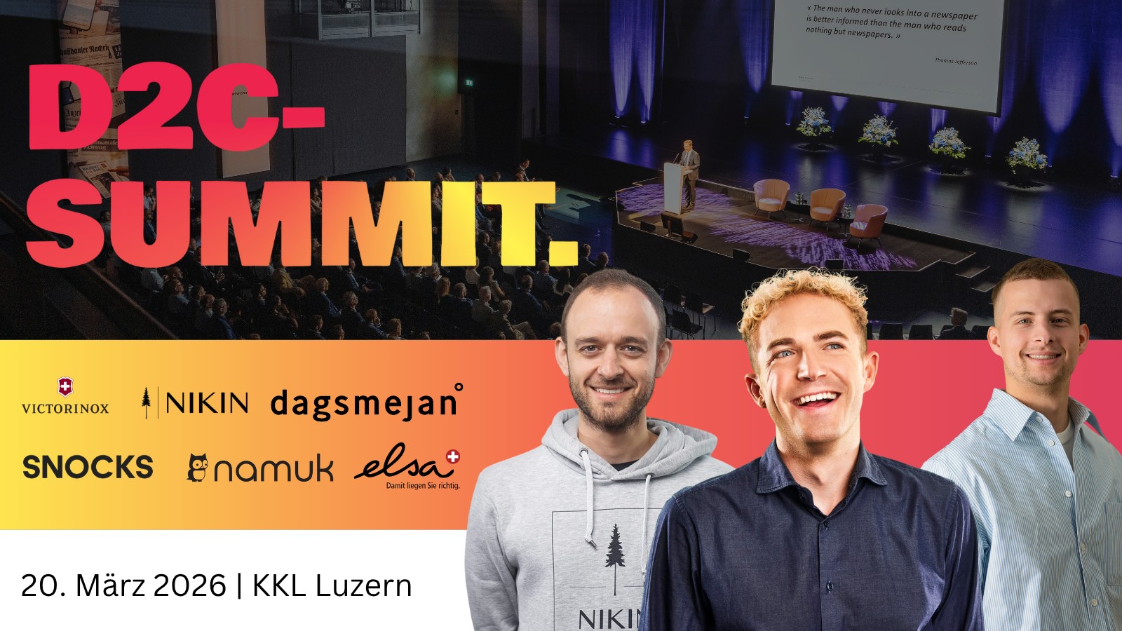 Am 20. März 2026 findet im KKL Luzern der D2C Summit 2026 statt – die Konferenz für die Schweizer D2C- und E-Commerce-Community. Der Summit bringt führende Köpfe, Markenmacher, Expertinnen und Entscheidende aus der D2C-Branche zusammen.