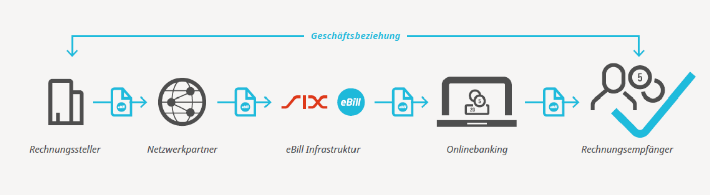 Gemäss SIX ist die Anbindung an die eBill-Infrastruktur von SIX für Unternehmen nur über zertifizierte Netzwerkpartner möglich.
