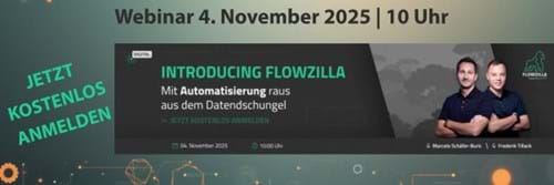 Viele Datensilos, zeitraubende Medienbrüche und manuelle Prozesse bremsen Wachstum, Effizienz und Innovationskraft Ihres Unternehmens? Dann ist es höchste Zeit, die digitale Transformation nicht nur zu denken, sondern auch umzusetzen. FLOWZILLA verbindet Systeme, automatisiert Workflows und bringt Ordnung ins Datenchaos – ohne Programmieraufwand, aber mit echter Enterprise-Skalierung und maximaler Wirkung.