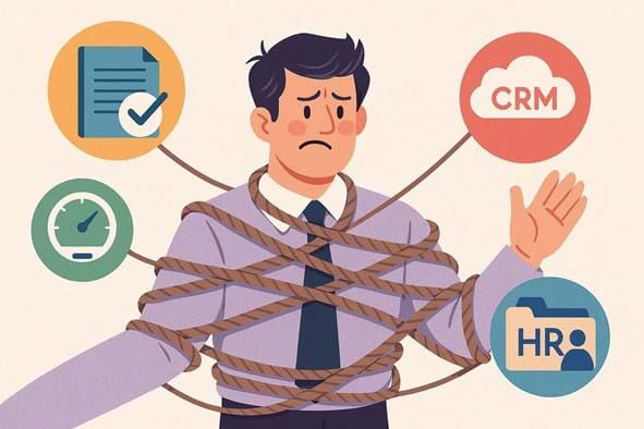 Verknotet im Tool-Dschungel: Warum HR mehr braucht als eine Software-Sammlung (Symbolbild Copilot)