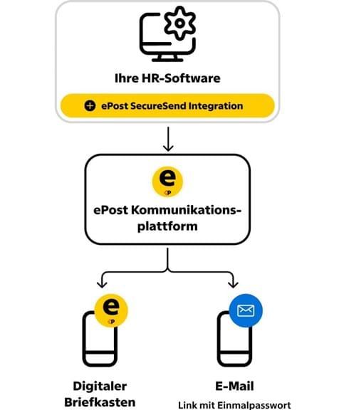 ePost SecureSend wird via API direkt aus Ihrer HR-Software angebunden – kompatibel mit SAP, Abacus, Sage und weiteren gängigen Lohnbuchhaltungslösungen. Für Unternehmen, die alle Versandkanäle über eine einzige Schnittstelle steuern möchten, steht zusätzlich ePost oneAPI zur Verfügung.