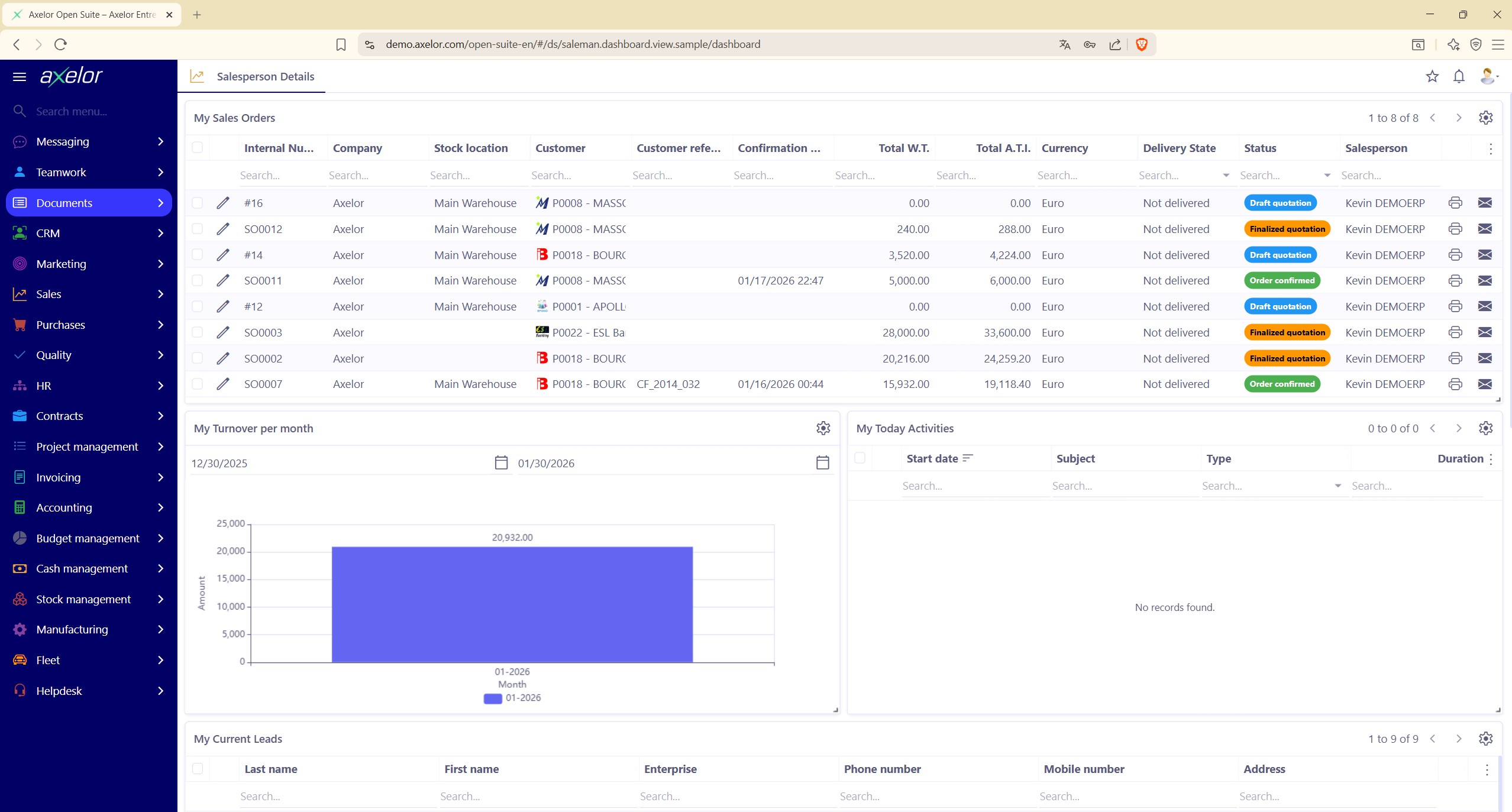 Aus organisatorischer Sicht kann Axelor den gesamten Unternehmensalltag abdecken: von der einfachen Auftragsabwicklung bis hin zu komplexen Prozessen in Einkauf, Fertigung, Lagerverwaltung und Finanzbuchhaltung. KMU starten dort, wo sie heute stehen und erweitern das System, wenn nötig Schritt für Schritt.