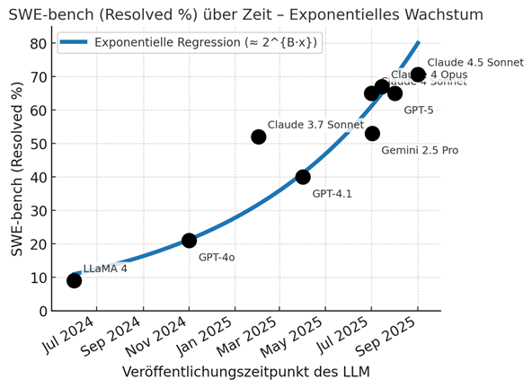 Diese Fortschritte lassen sich mithilfe Benchmarks messen. Sie erfassen, wie gut ein Modell Programmieraufgaben löst, Code versteht oder fehlerhafte Programme repariert. Dabei muss man sich bewusst sein, dass sie eher Einzelleistungen prüfen, die Ergebnisse je nach Prompting, Contextengineering und Umgebung variieren und dass neue Modellgenerationen teilweise auf diese Benchmarks trainiert wurden. Dennoch sind diese Benchmarks wichtig, um die Leistung der Modelle zu objektivieren.